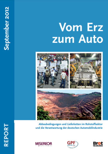 Die Studie “Vom Erz zum Auto – Abbaubedingungen und Lieferketten im Rohstoffsektor und die Verantwortung der deutschen Automobilindustrie” wurde von MISEREOR, “Brot für die Welt” und dem Global Policy Forum Europe verfasst. Schwerwiegende Menschen- und Arbeitsrechtsverletzungen sowie Umweltschäden sind demnach bei der Gewinnung der Automobilrohstoffe Eisenerz, Bauxit und Kupfer in vielen Abbauländern an der Tagesordnung. Die drei Organisationen erwarten von der Automobilindustrie als einem zentralen Abnehmer, dass sie Herkunft und Abbaubedingungen der von ihr verwendeten Rohstoffe analysiert und beim Einkauf von Rohstoffen strenge Umwelt- und Sozialauflagen zugrundelegt. Bundesregierung und EU sollten ihrerseits die Unternehmen zur detaillierten Offenlegung von Zahlungsströmen, Herkunftsnachweisen für Rohstoffe und zur gebührenden Sorgfalt in Bezug auf Menschenrechte und Umweltschutz entlang der gesamten Lieferkette verpflichten.