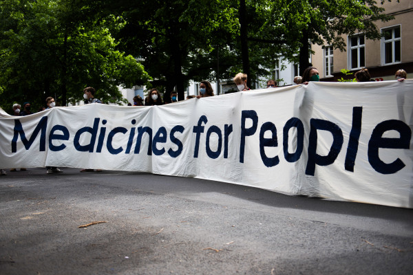 Vaccine inequity thus was one of the more prominently featured subjects. However, the question of a patent waiver was hardly even touched upon let alone discussed. In this regard the World Health Summit constitutes a missed opportunity to push for changes in intellectual property regimes and a TRIPS waiver. For those who participated in the opening ceremony of the summit, this came as no surprise. Whereas civil society was restricted to the listener’s position, two speaker slots were given to Big Pharma representatives alone. This power and representation imbalance was present throughout the event. This was not accidental since the Summit is funded by a third (around €2 Mio) from private sector donations. Surprisingly however, the expression of support for a TRIPS waiver made it into the Declaration of the M8 Alliance, the academic backbone of the World Health Summit, that somewhat guerilla-style appeared on the seats of the last session’s attendants.